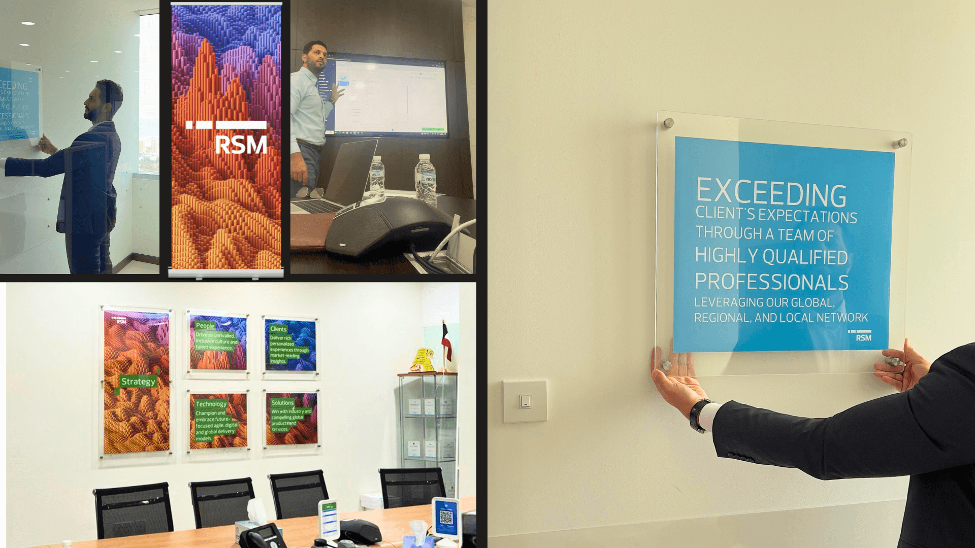 وكانت النتيجة مساحة احترافية وجذابة تعرض بشكل مثالي هوية العلامة التجارية لشركة RSM الكويت.